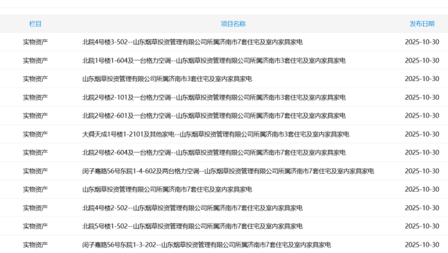 治理有限公司(下称“山东烟草投资”)正在山东产权业务中央一口吻挂出10套居处及配套家具家电要让渡,总价为861.51万元。